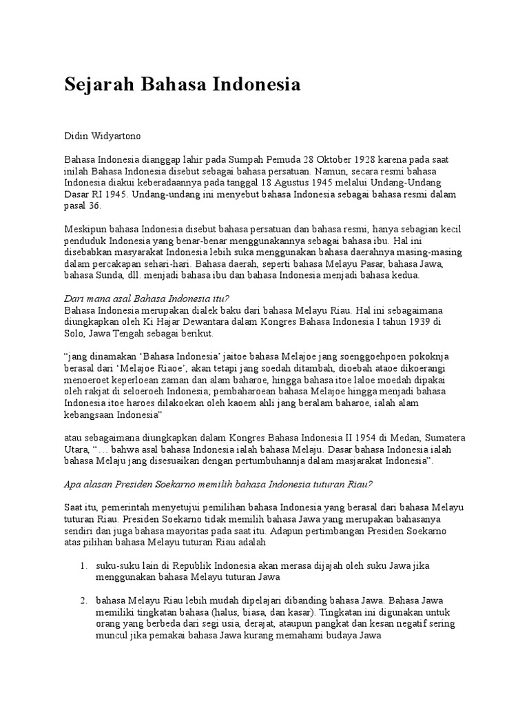 Sejarah Bahasa Indonesia