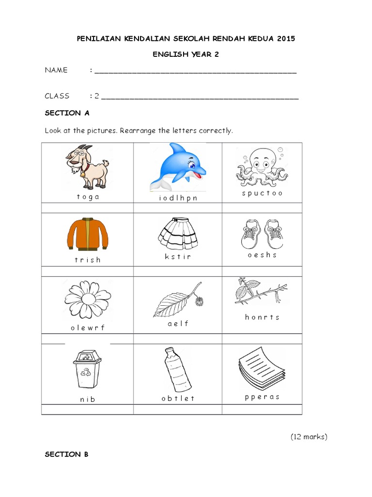 Contoh Mid Year Exam Tahun 2 Bahasa Inggeris 1st Grade Worksheets Words Exam