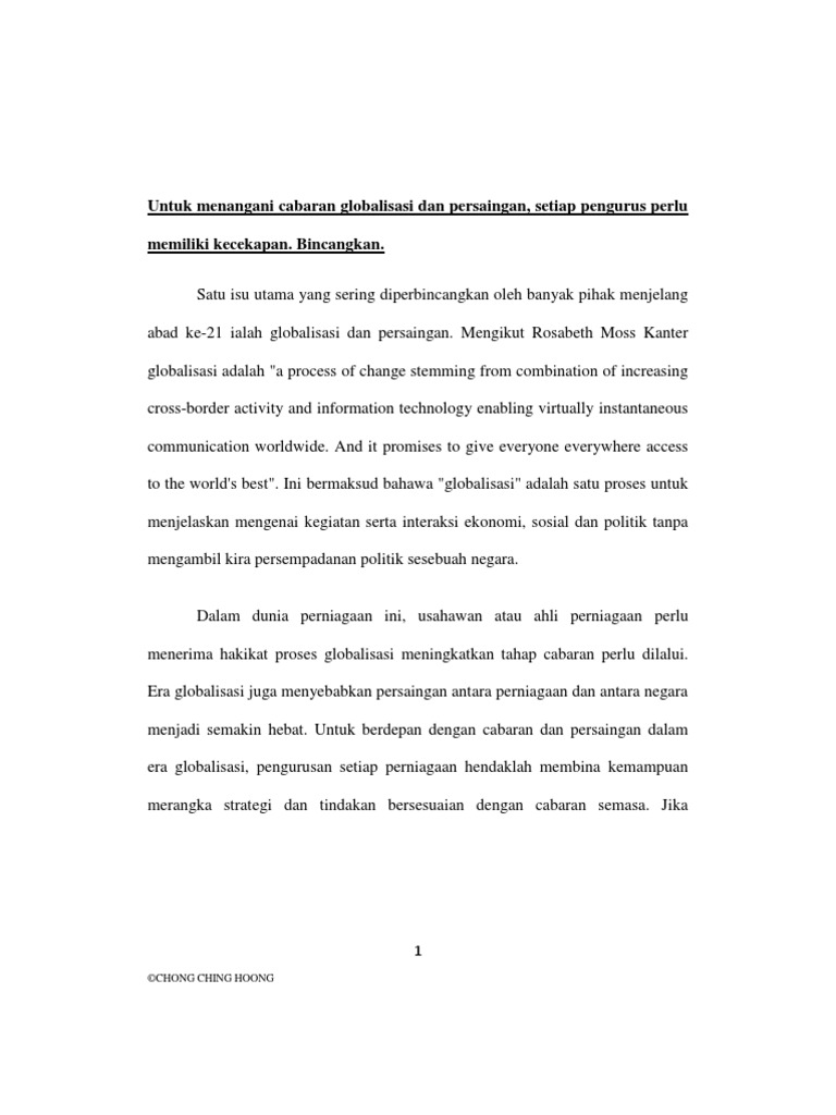 Tajuk Cara Firma Pengusaha Tempatan Mengatasi Cabaran Globalisasi