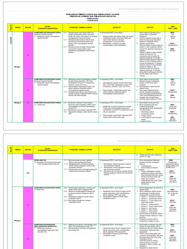Rancangan Pembelajaran Dan Pengajaran Tahunan Pendidikan Jasmani Dan Pendidikan Kesihatan Tingkatan 2 Tahun 2018