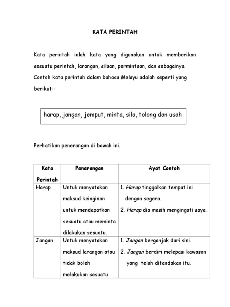 Laman Bahasa Melayu Kata Perintah