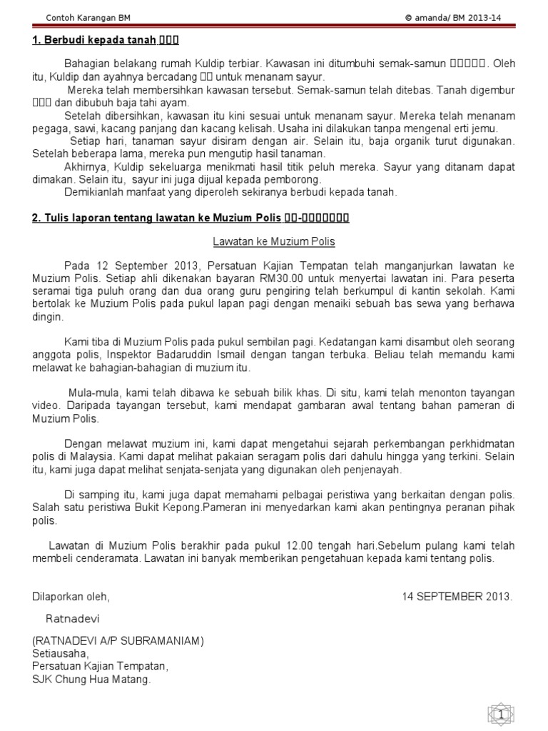 Contoh Karangan Laporan Format Pmr Contoh 193 Themelower