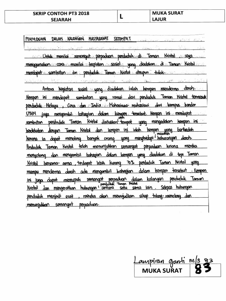 Tambahan Dan Gantian Skrip Jawapan Contoh Sejarah Pt3 2018 Pdf