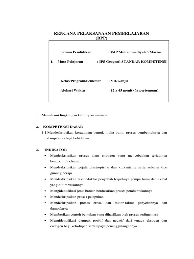 Rencana Pelaksanaan Pembelajaran Rpp Satuan Pendidikan Smp Muhammadiyah 5 Mariso