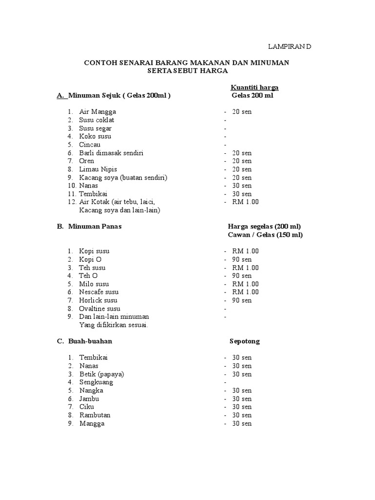 Pdf Contoh Format Sebut Harga Kantin Roza Karim Academia Edu