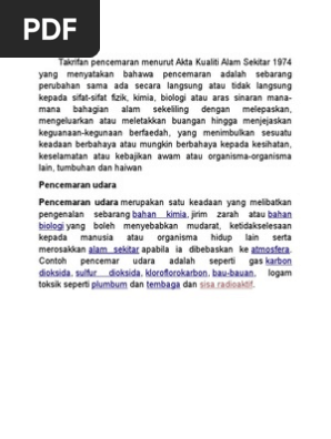 Menurut Akta Kualiti Alam Sekeliling 1974