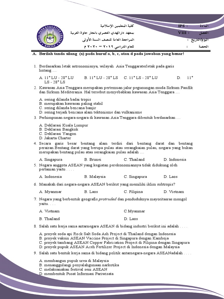 1 Perhimpunan Negara Negara Di Kawasan Asia Tenggara Di Bentuk Berdasarkan A Deklarasi Kuala Brainly Co Id