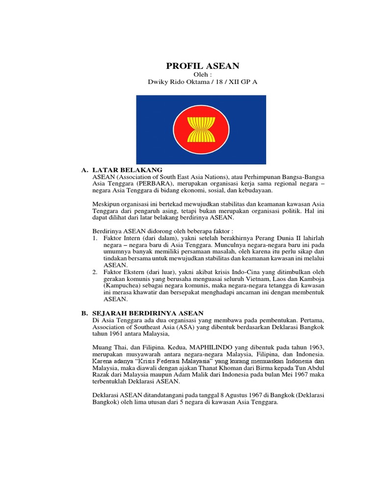 Profil Asean Oleh Dwiky Rido Oktama 18 Xii Gp A