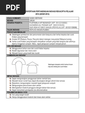 Kertas Kerja Penyertaan Pertandingan Inovasi Rekacipta Pelajar 2014