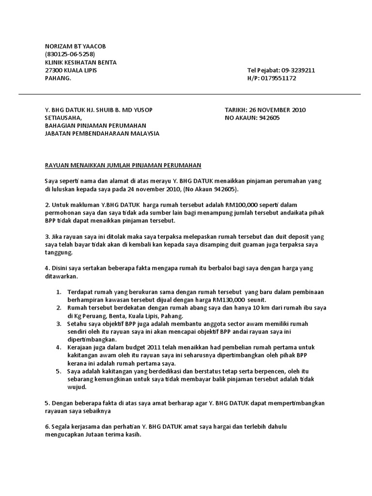 Contoh Surat Rayuan Untuk Bayar Ansuran Kepada Lhdn I Kebaya
