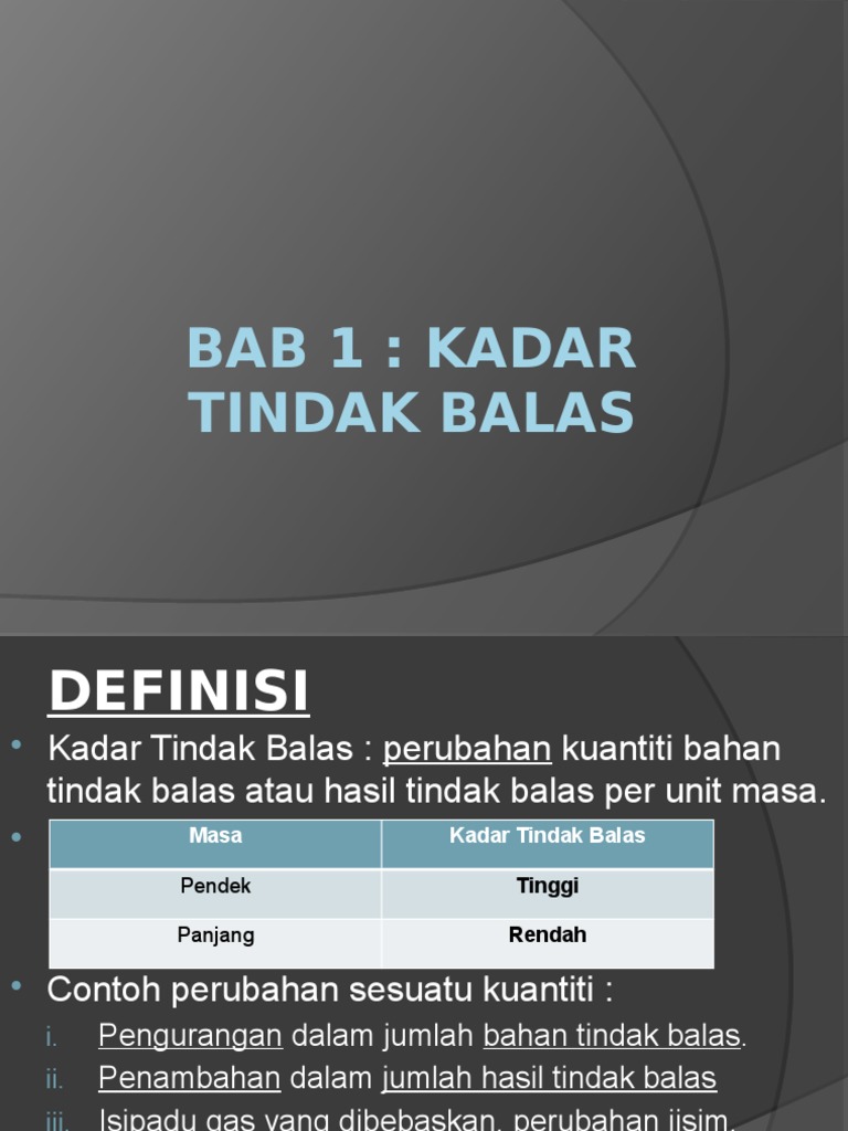 Pdf Bab 1 Kadar Tindak Balas Rate Of Reaction Arina Adila Academia Edu