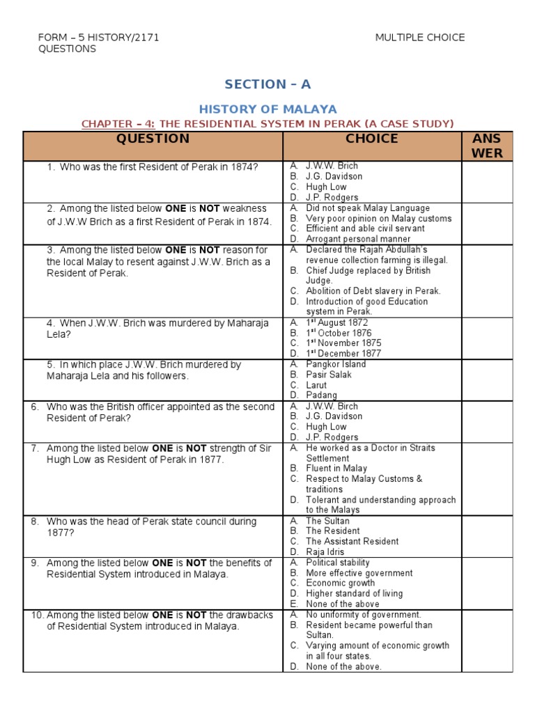 Choice Ans Wer Section A Strait Of Malacca Malaysia